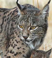 Este magnífico felino es una especie protegida ya desde el año 1966, desde entonces se está intentado combatir la amenaza de su extinción, tan sólo en diez años su población se ha reducido a la mitad. Actualmente, se encuentra en zonas muy concretas del territorio nacional y del país vecino, Portugal. Habita en el bosque y donde abunden conejos, ya que éstos suponen la base de su alimentación. Presenta una figura esbelta y elegante. Las patillas que sobresalen del rostro y sus prolongadas y puntiagudas orejas caracterizan su físico. Su pelaje posee pequeñas marcas que se reparten por todo el cuerpo y los colores pueden ser del pardo al grisáceo con manchas negras.
